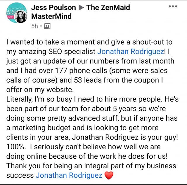 “We’ve worked with other marketing companies before, but none of them understood the cleaning industry like Jonathan does. Within months, we were ranking #1 in our city and our phone hasn’t stopped ringing.”